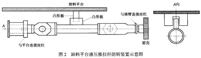 2、卸料平臺(tái)增加防止絲杠轉(zhuǎn)動(dòng)裝置避免推拉桿退扣